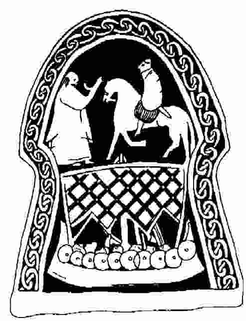 reichlich verziertem Bugsteven des Osebergschiffes entnommen